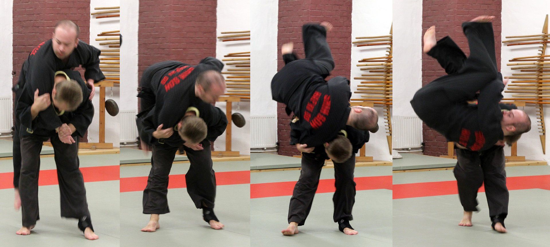 ^ Verteidigung gegen zwei Angreifer: Doppelwurftechnik